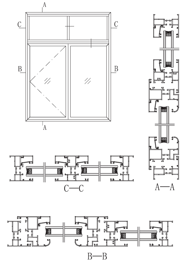 TZ55系列注膠節(jié)能平開窗組裝圖